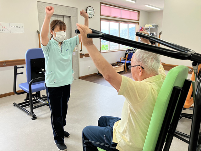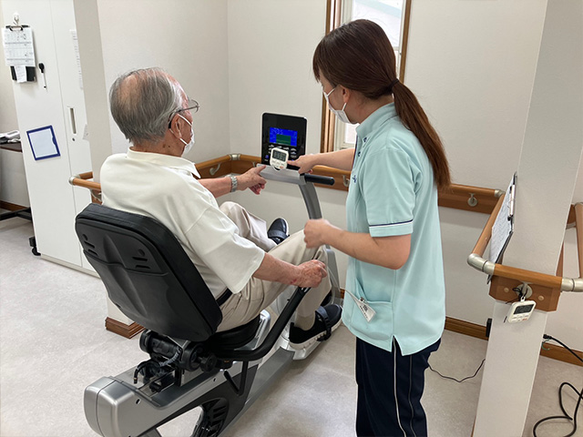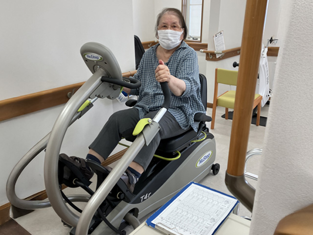 歩けない方・座るのが不安定な方でも安全に全身運動を行うことで持久力の向上を目指します。
