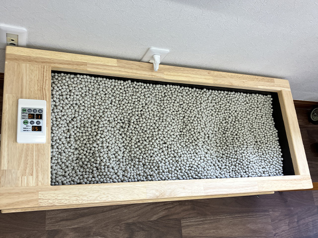 セラミックボールで遠赤外線を発し、体を芯から温めます。靴下を脱がずに手軽に行えます。